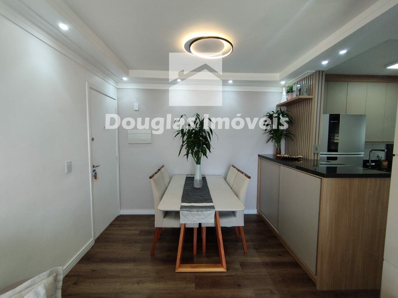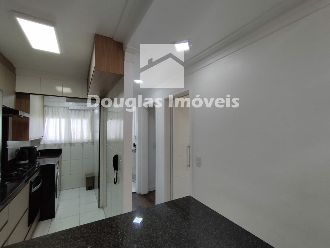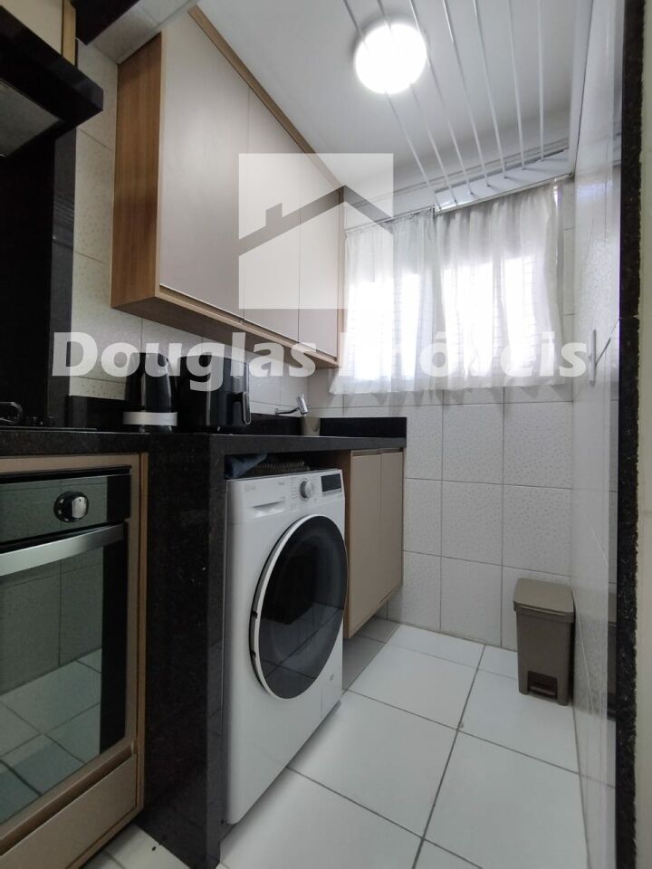50m2 com 2 dormitórios, sala com varanda, cozinha com armário, área de serviço , 1 banheiro e 1 vaga para carro.