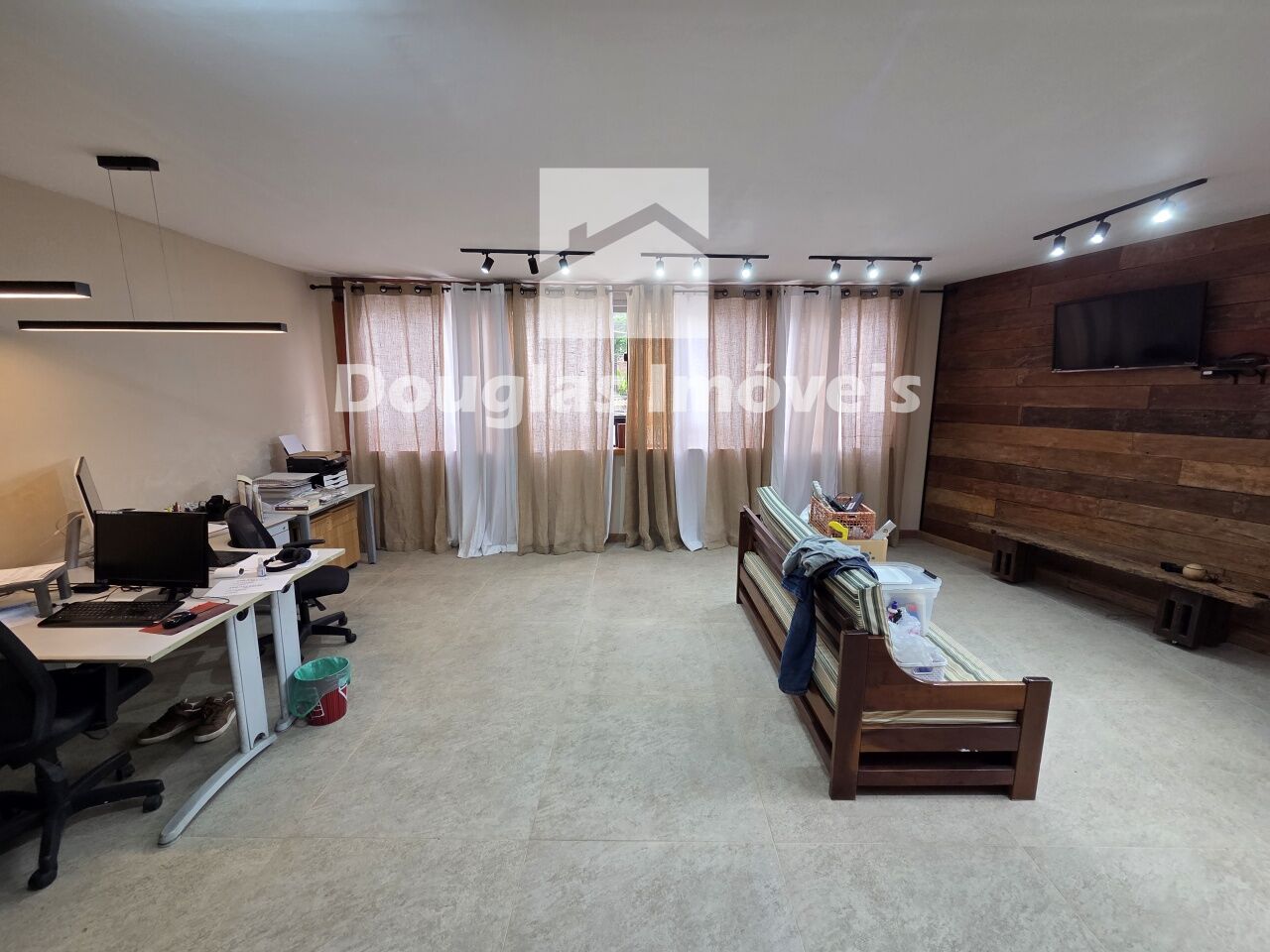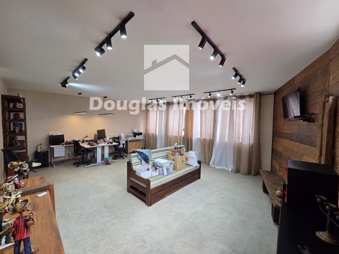 3 dormitórios sendo 1 suíte com closet, amplo escritório, banheiros social, ampla sala, cozinha com armários, corredor lateral, quintal gramado, área de serviço com banheiro, espaço com área gourmet, depósito e garagem para até 4 carros.